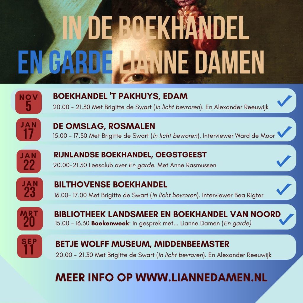 Op vrijdagmiddag 23 januari 2026 van 16.00 tot 17.00 uur was ik samen met collega-schrijver Brigitte de Swart te gast in de Bilthovense Boekhandel. We werden door Bea Rigter geïnterviewd over onze boeken: In licht bevroren over Emmy Andriesse en En garde over d’Éon. Reserveren via info@bilthovenseboekhandel.nl of in de winkel.